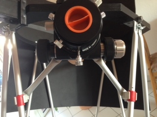 wovon die zwei hinteren über Flügelmuttern höhenverstellbar sind, zur Hauptspiegeljustage.