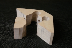 Die beiden Ringe des Huts wurden mit der Dekupiersäge aus 12 mm Birke Multiplex ausgesägt. Dies