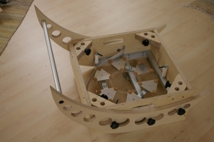 wollte, wurde das Dreibein durch eine runde Scheibe aus 21 mm Birke-Multiplex mit 10 Teflon-Auflagen