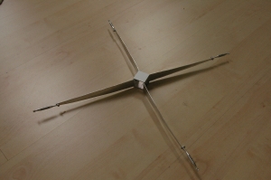 die mit Polystyrol-Abstandshülsen (je drei aufeinandergeklebt) überzogen sind. Am oberen Ende befindet