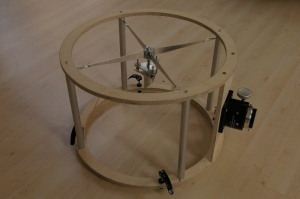 Stabilität bei weit nach unten geschwenktem Dobson, die weit ausladenden Höhenräder schwingen viel