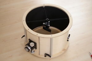 Hut eine sehr hohe Steifigkeit. Der Okularauszug (Crayford) wird zentrisch in der Höhe auf dem Okularauszugsbrett