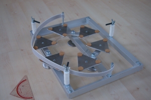 Die Spinne inklusive Fangspiegelhalter kann mit den Spannschlössern sehr gut zentriert und gespannt