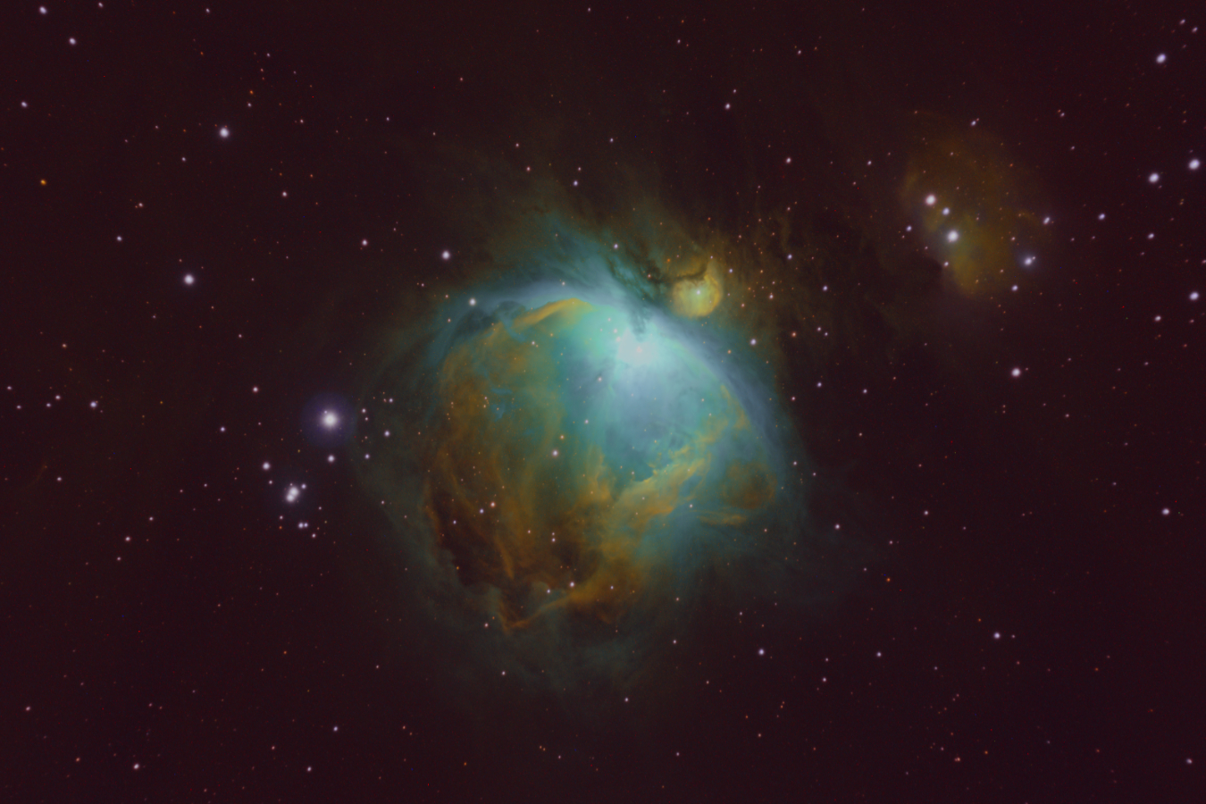 Mommenheim, 24.01.22; ED 72mm f/4,8, SIIHaOIII Hubblepalette: SII1 20x180s, Ha 20x180s, OIII1 20x180s, gesamt: 3h Bildbearbeitung: DSS, Affinity