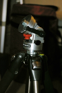 Reisemontierung. Über Rändelschrauben kann der Azimut