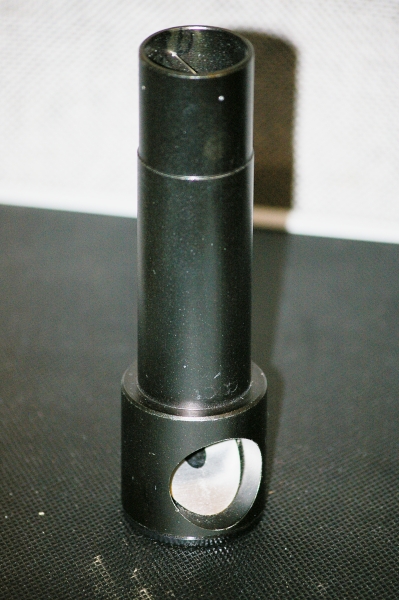 mittig durchbohrt ist, im oberen Teil. Das Cheshire-Okular eignet