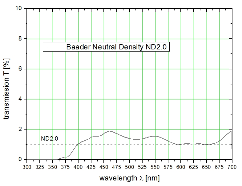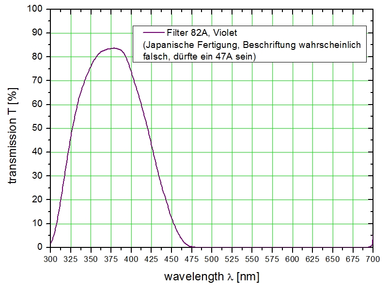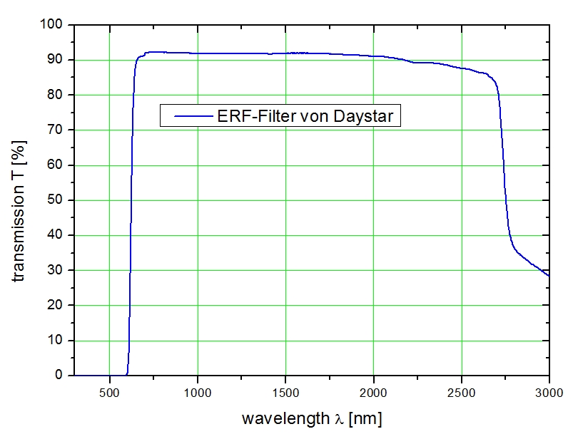 Die folgenden Transmissionskurven wurden mit einem Perkin Elmer Lambda900 Spektrometer bei einer Auflösung von 1 nm gegen Luft als Referenz gemessen. Die meisten Filter sind meine eigenen, einige sind von Sternfreunden aus meiner Umgebung.