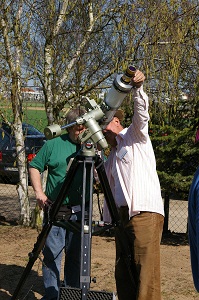 Hier wird eifrig am 107mm TMB mit Baader Herschelkeil beobachtet, ein Gerät, das in einigen Internet-Foren