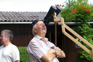 Selbstbau-Fernglasmontierung von Michael Engel. Das Glas ist perfekt ausbalanciert und sehr leicht bewegbar, das Sonnenbild