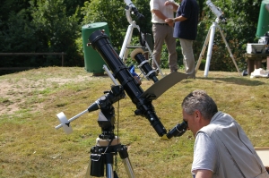 Refraktor von Celestron. Auffallend war, dass sich immer mehr Binoansätze bei der Beobachtung im H-Alpha durchsetzen,