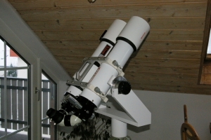 mein vorhandenes Vixen ED 102SS irgendwann einmal zu verdoppeln. Der Blick durch ein Astromechanik-Bino auf dem ITV 2012