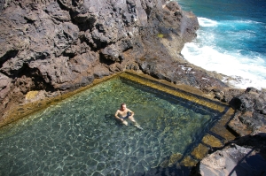 dort war zu stark, um im Meer schwimmen gehen zu können, aber Dietmar hat ein kleines Bad im Felsenpool genommen (s. Foto).