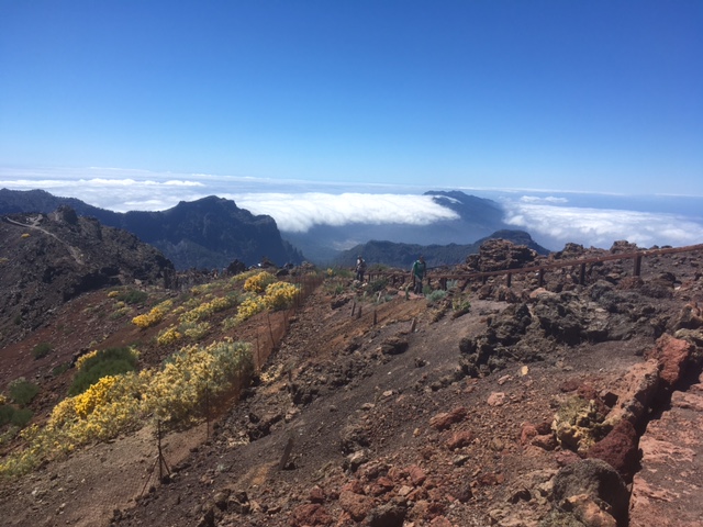 14 Grad bei der Abzweigung von der LP1 zum Roque, über 20 Grad auf dem Gipfel. Das Besucherzentrum schien immer noch nicht fertig zu sein, die Zufahrten zu den Gebäuden samt Parkplätzen waren abgesperrt und