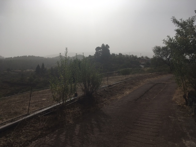 sehen ;-) Wir hoffen, dass die Staubwolke am Montag Abbend durchgezogen ist und wir wieder loslegen können. Momentan sieht es aber eher noch schlecht aus, siehe Bild mit Bergblick von unserer Finca aus und