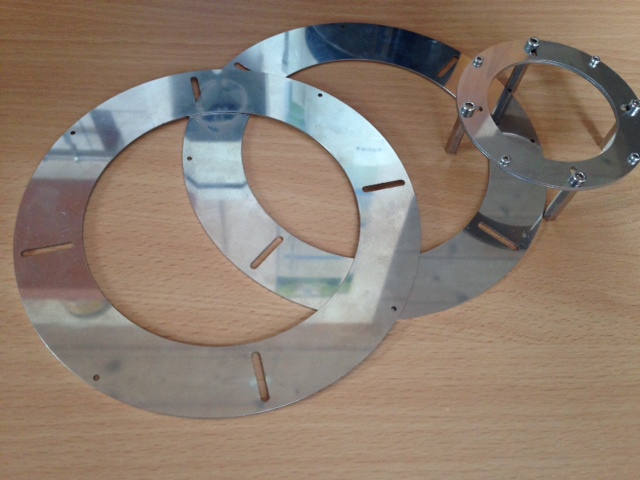Ausgangspunkt sind je zwei Metallringscheiben mit 1mm Dicke, die in diesem Fall ausgelegt für meinem 4"-Doppelrefraktor